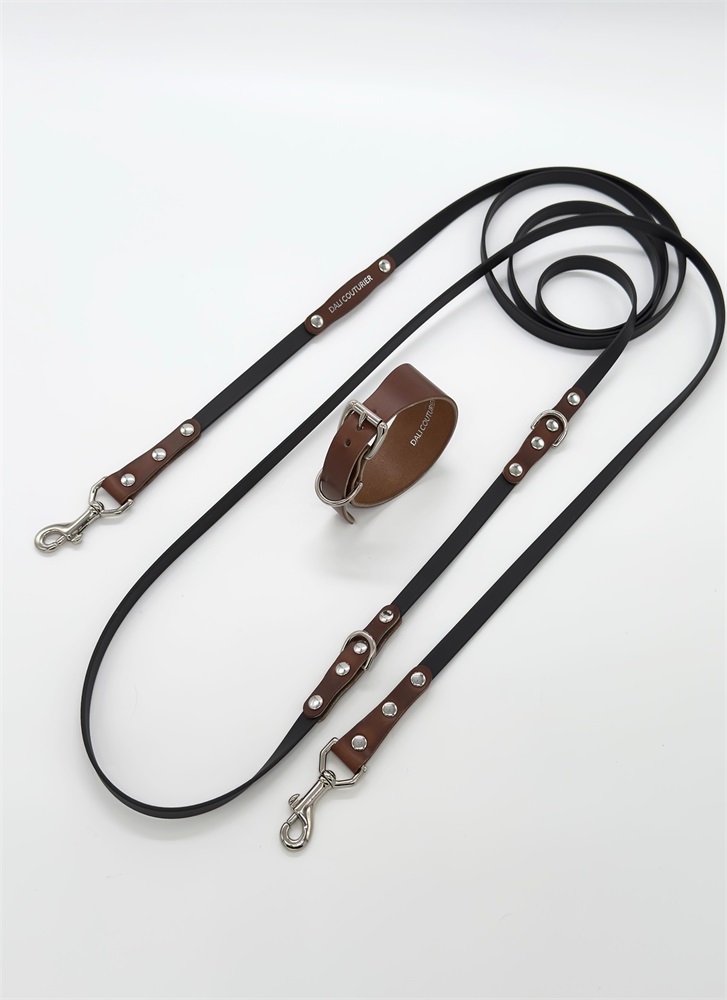 Поводок перестежка для малых и средних пород для прогулок в городе из биотана с элементами из натуральной кожи